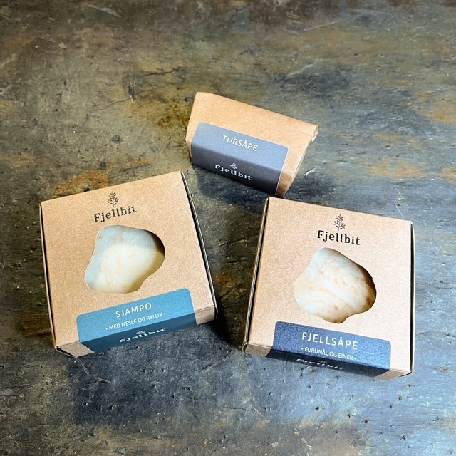 Her får du kjøpt 3 populære fjellbitsåper laga av 100 % naturlege, allergivenlege og miljøvenlege ingrediensar.